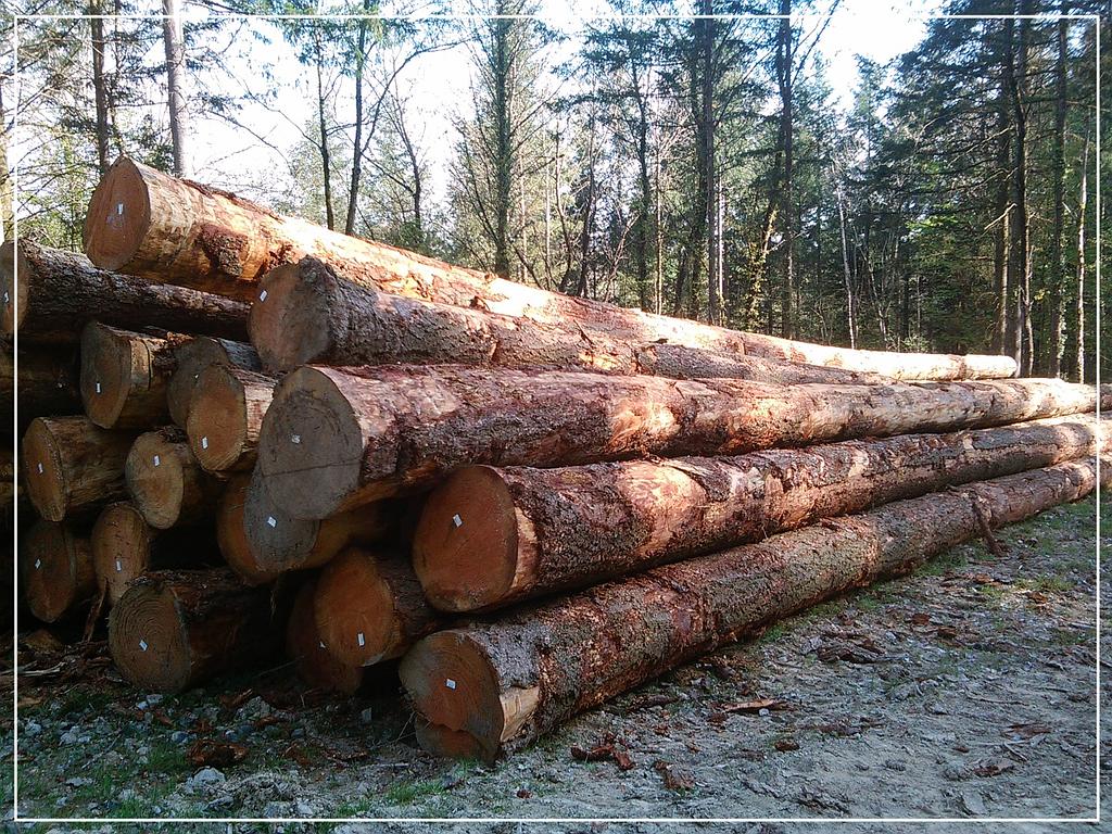 ♦ Les bois travaillés en grumes et en billons : chêne, hêtre, frêne, châtaignier, peuplier, Douglas, épicéa, sapin, mélèze.